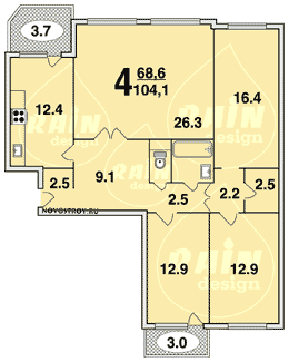 статьи / Планировки квартир / Бекерон / четырехкомнатная квартира